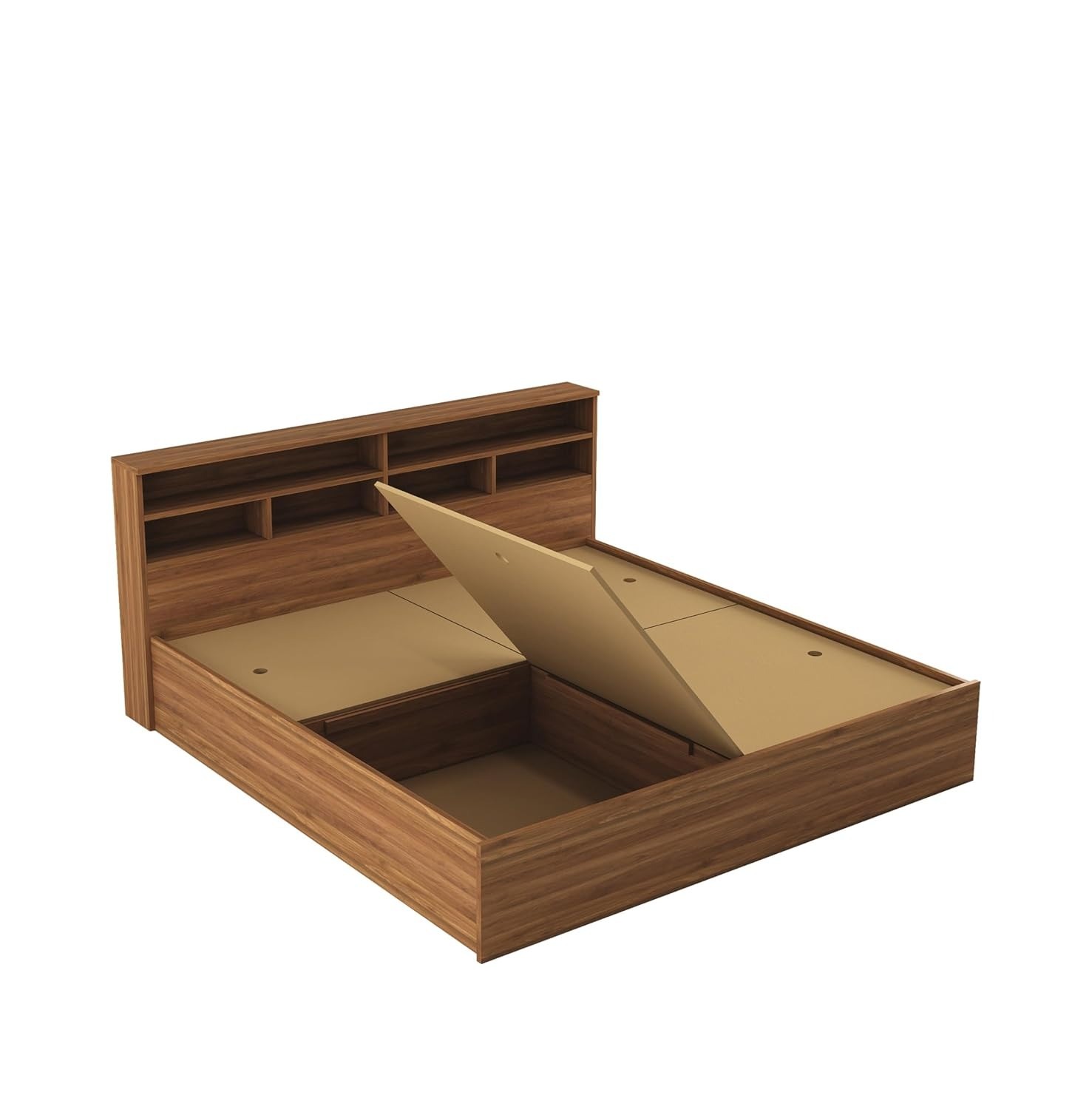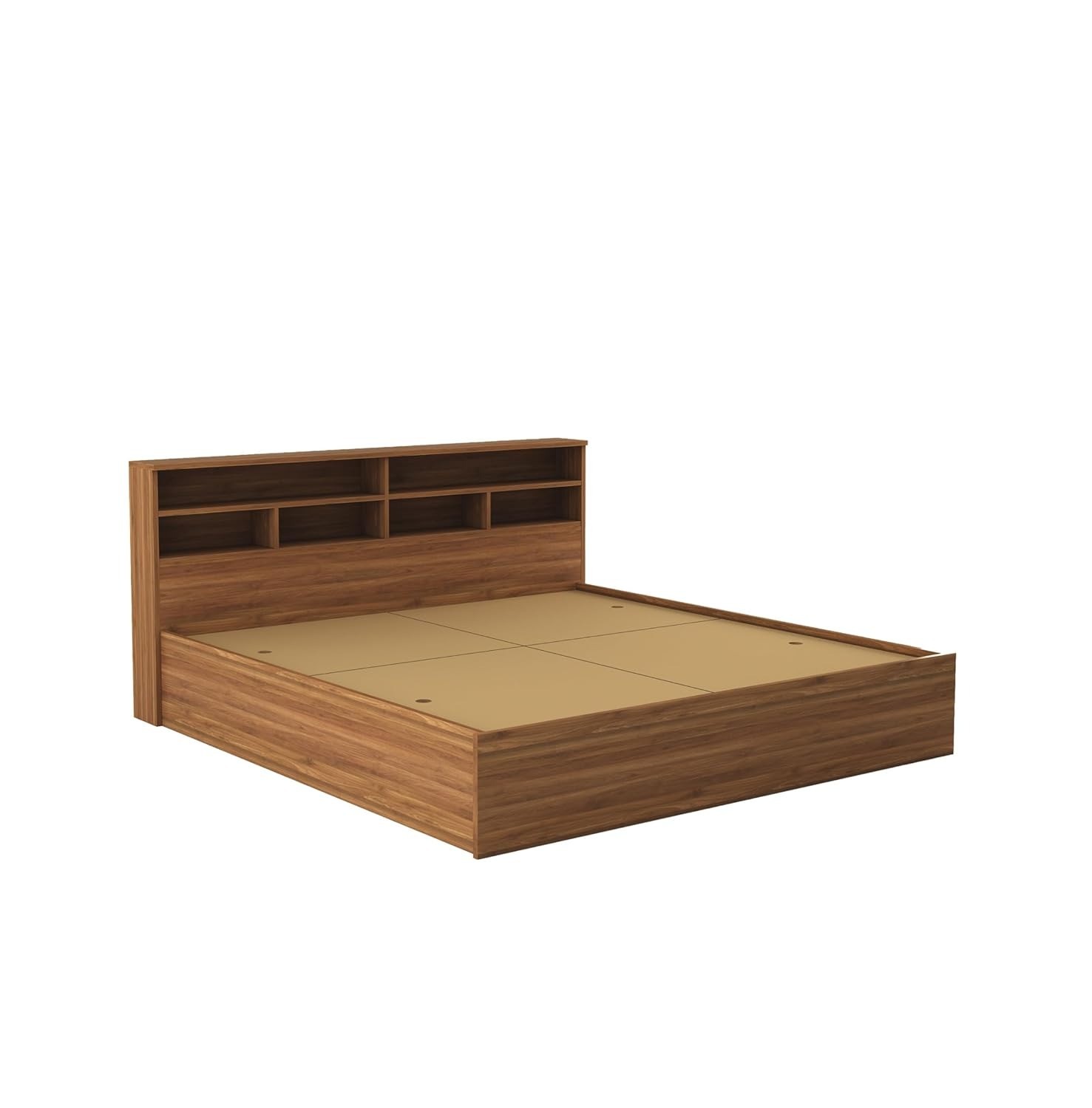 • Bed Dimensions: Length 220cm X Width 191cm X Height 100cm | Mattress Size: King (78X72 Inches - Not included) | Material:- Engineered Wood, Finish: Walnut Finish
